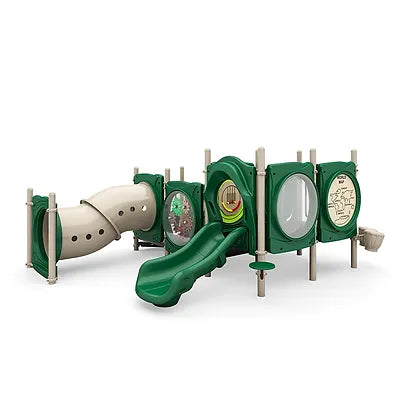 Prepare to embark on a world of wonder with the Ashton Playground, a charming inground-mounted playset tailored for children aged 6 to 23 months. Ideal for parks, schools, communities, HOAs, and churches, this playground promises an abundance of joy and learning opportunities for our youngest adventurers! Available in vibrant primary colors or natural hues, the Ashton Playground seamlessly integrates into any environment, enhancing the beauty and functionality of your outdoor space. With nine captivating activities including a climber, gear panel, and slide, along with enticing features like the rain wheel, beads & cups panel, world map panel, PE stool, gears panel, maze panel, bongo, and large window panel, children are invited to explore, discover, and play to their heart's content. Crafted with safety as our top priority and meeting stringent industry standards, parents can rest assured that their little ones are playing in a secure environment. Join us in creating unforgettable moments of laughter, growth, and adventure with the Ashton Playground – where every day is a new and exciting journey!