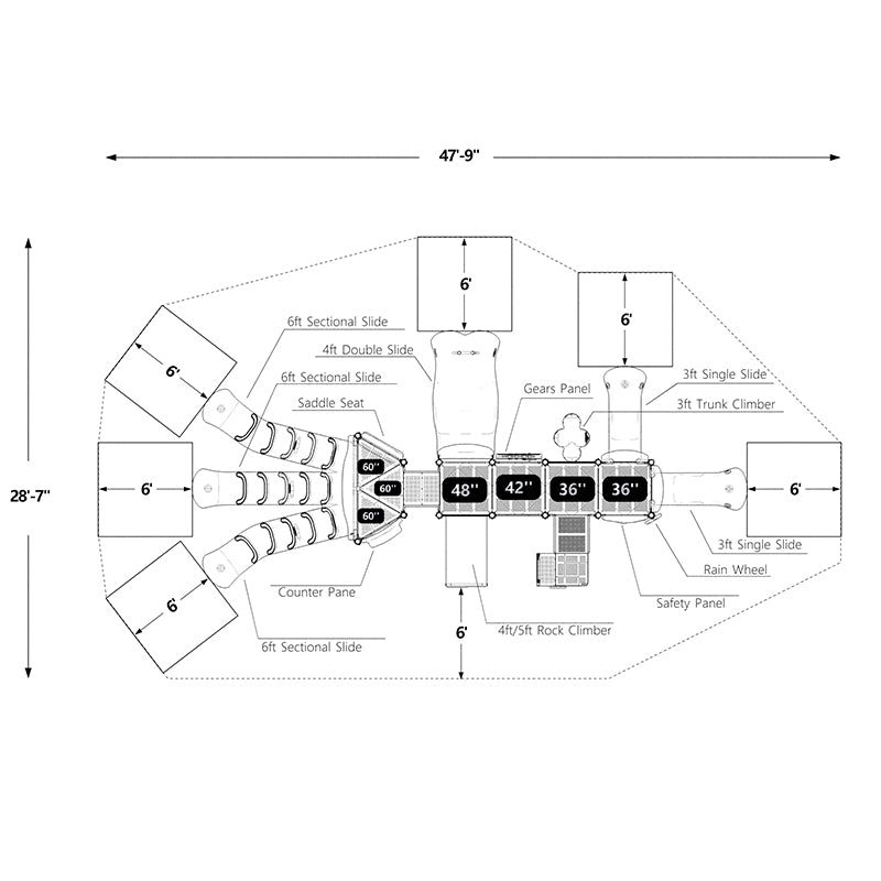 Access to this sliding paradise is made easy with multiple entry points, including the challenging 4ft/5ft Rock Climber, the adventurous 3ft Trunk Climber, and the classic 3ft ADA Stairs, ensuring accessibility for children of all abilities.
