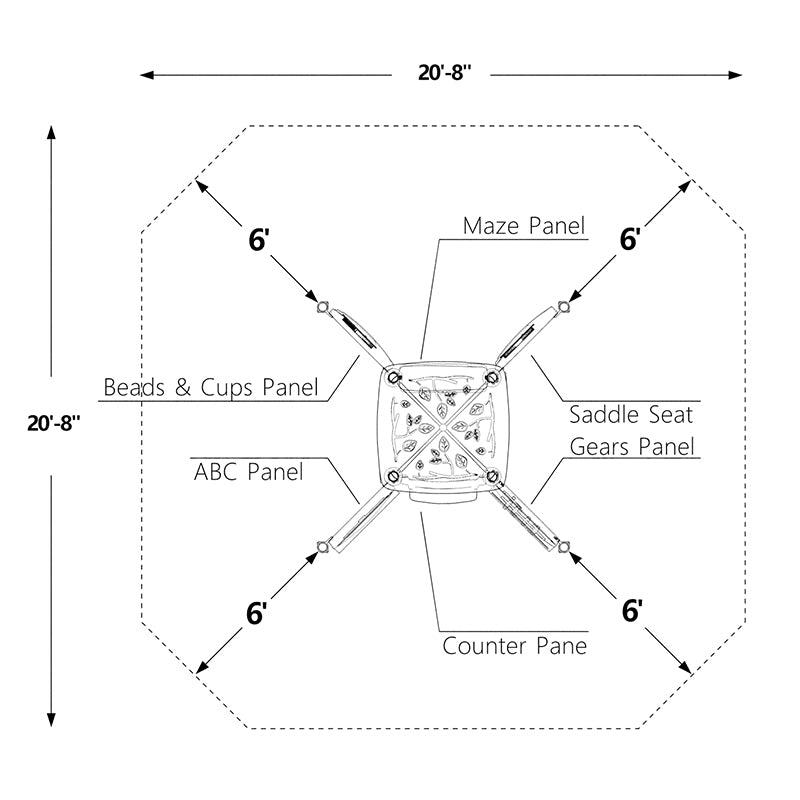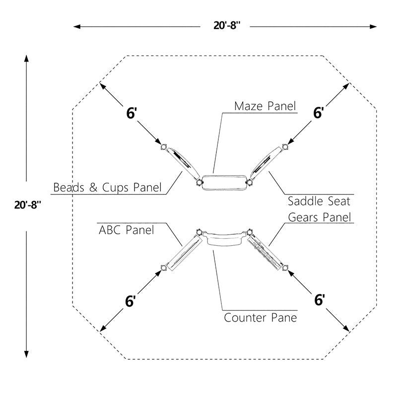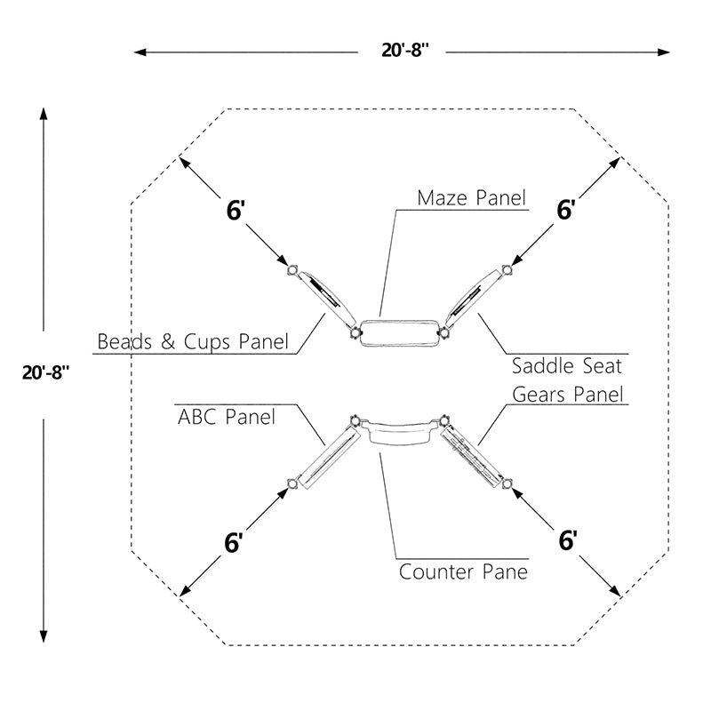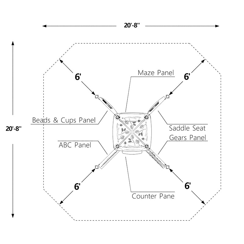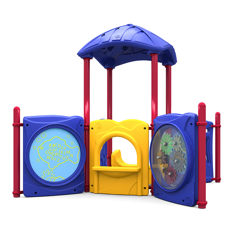 Kidz Corner is a unique and thrilling ground-level playset packed with exciting activities, perfect for children aged 6 to 23 months. What sets Kidz Corner apart is that 100% of its features are accessible at ground level, making it easy for children of all abilities to join in on the fun. Little explorers will delight in the six interactive play panels, including the educational ABC Panel for practicing letters, the challenging Maze Panel for problem-solving, and the Beads and Cups Panel for honing fine motor skills. Each panel offers a fun and enriching learning experience, encouraging cognitive development and creativity. The Counter Panel provides opportunities for imaginative play, while the Saddle Seat Panel offers a cozy spot for well-deserved breaks. Kidz Corner is an ADA-compliant commercial-grade system, ensuring safety and accessibility for all children. Available for Quick Ship in vibrant Primary or Nature palettes, with the option to customize with additional components, Kidz Corner Playground is the perfect addition to parks, schools, communities, HOAs, and churches, promising endless joy and excitement for young adventurers.
