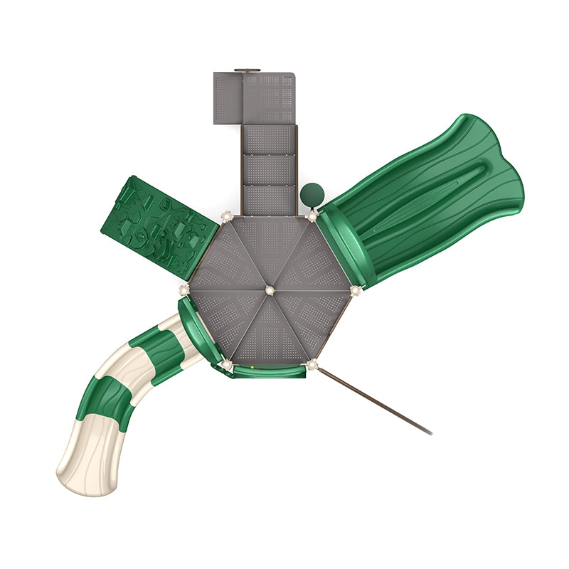 The 4-foot double slide offers an additional exciting slide experience, while the gear panel fosters cognitive development and problem-solving skills, inspiring curiosity and critical thinking. The 4-foot/5-foot rock climber challenges young climbers' strength, coordination, and agility in a safe and controlled environment.