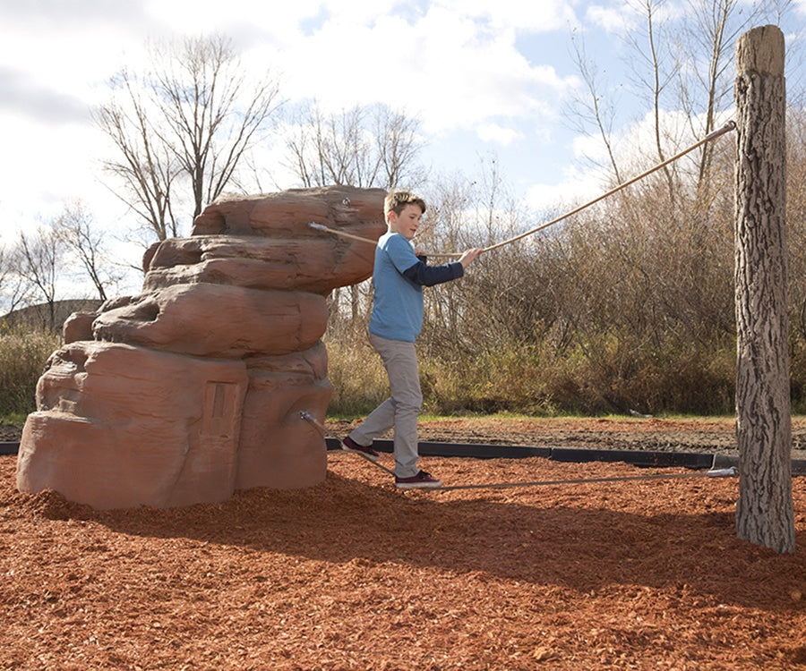 Add challenge and adventure to your play space with our nature inspired boulders linked by nets and ropes. Mount Hayden features one Medium Sandstone Boulder and a Log Post connected by Balance Ropes. Children will use large motor skills as they climb on the boulder while also exercising balance as they traverse across the Balance Ropes.