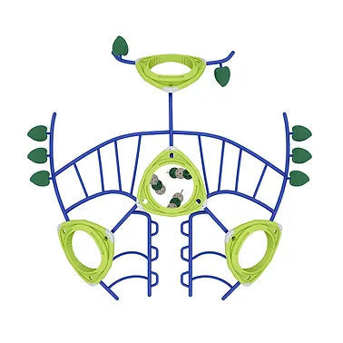 The main structure, measuring 17' × 15'10" × 7'10", is designed to resemble a giant spider web, encouraging children to climb, crawl, and navigate their way through the interconnected network of ropes and platforms. The unique design promotes the development of gross motor skills, balance, and coordination while fostering imaginative play.