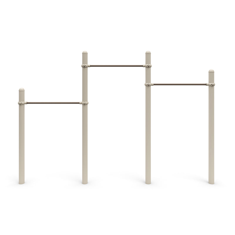 Introducing Wise Tri-Level Bars, the ultimate fitness solution for parks, schools, communities, HOAs, and churches! Designed to engage children in active play and promote physical fitness, these tri-level bars offer a dynamic and challenging exercise experience. With a use zone of 23 feet by 13 feet and a fall height of 75 inches, the Wise Tri-Level Bars provide a safe and spacious environment for children to develop their strength, coordination, and agility. Measuring 10’6” by 6”, this sturdy structure is built to withstand rigorous use and encourage kids to reach new heights of fitness and fun. Let the Wise Tri-Level Bars be the centerpiece of your recreational space, inspiring healthy habits and active lifestyles for children of all ages!