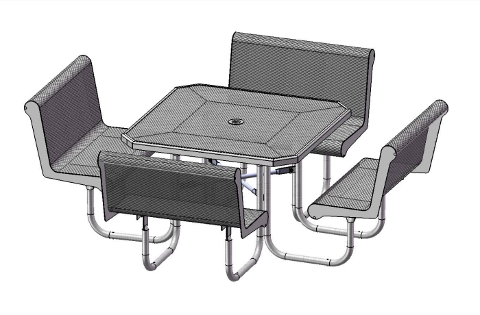 The Capri Seating Table offers comfortable bench-style seating for ultimate comfort. This portable table comes with a 46" square or octagon table top with a standard 1-9/16"diameter umbrella hole.