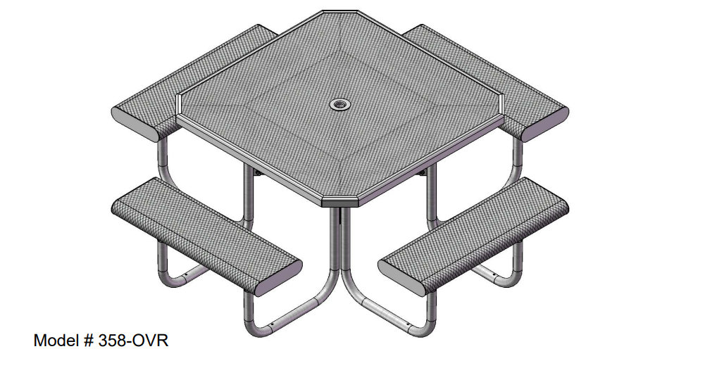 • 46" square, octagon, or round table with 1-9/16" I.D. umbrella hole standard