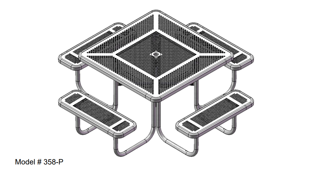 - 46" square, octagon, or round table with 1-9/16" I.D. umbrella hole standard
