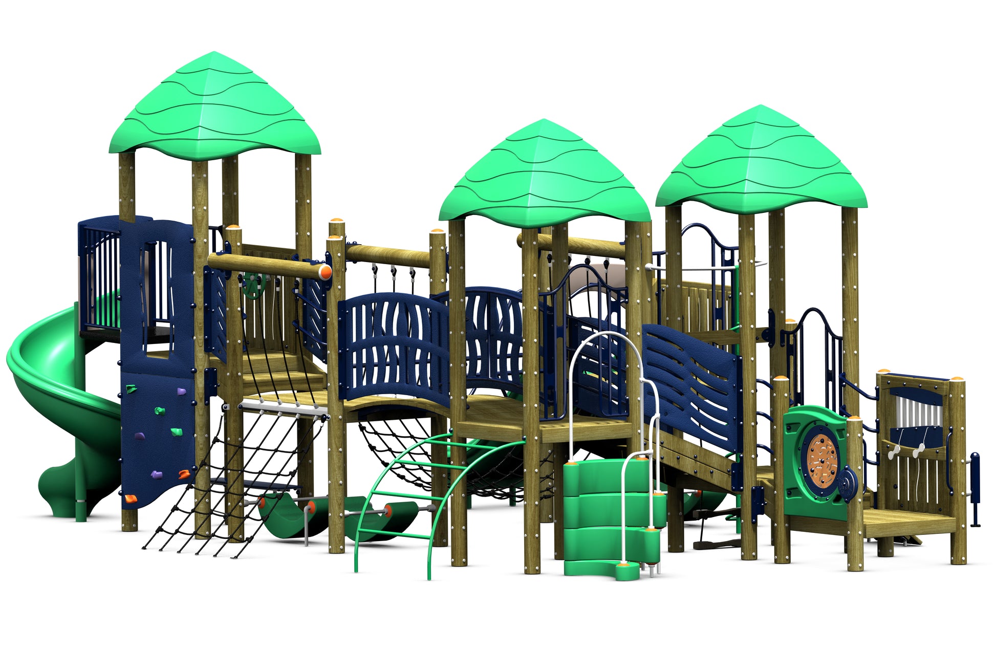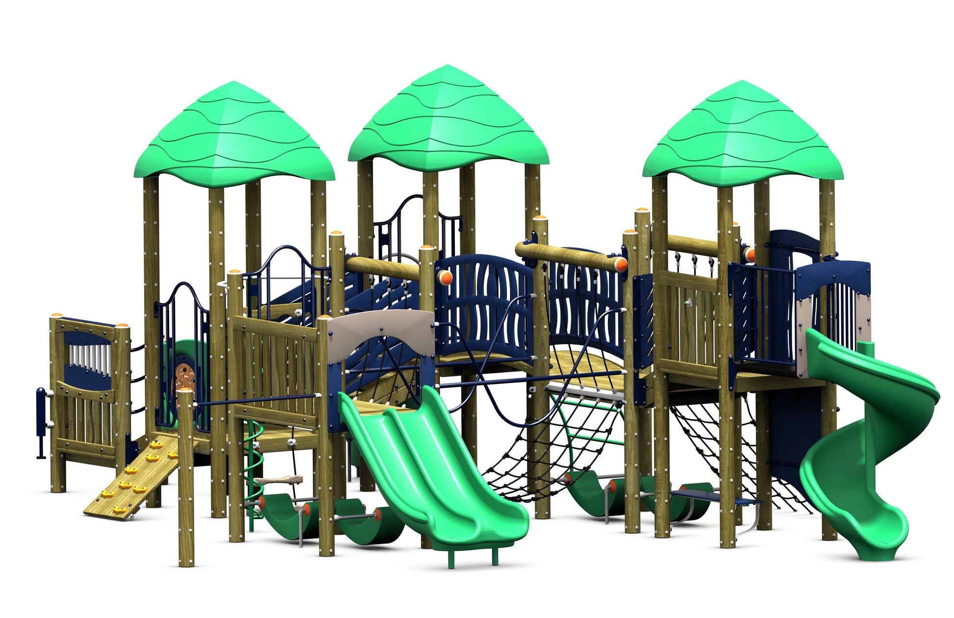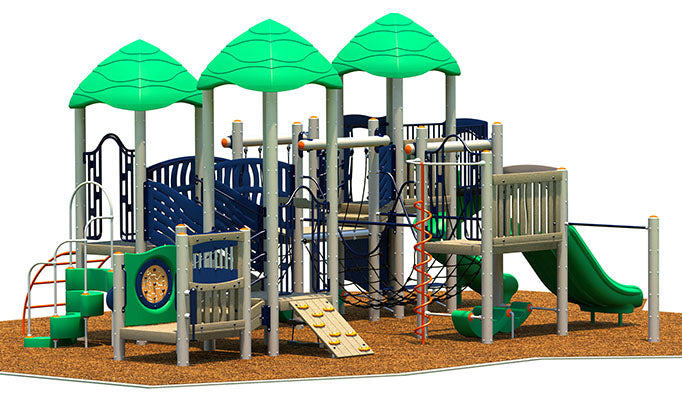 The Canopy Play System is an exciting playground solution ideal for B2Bs, schools, parks, churches, and HOAs looking to create an engaging outdoor space for children aged 5-12. Occupying a 46'1" x 37'0" use zone, this system efficiently utilizes space while offering plenty of room for play. With a modest fall height of 5'6", it prioritizes safety without compromising on fun. The Canopy Play System features 19 diverse activities and can accommodate 50-60 children at once, making it perfect for busy community areas. Weighing 5,148 lbs, it's a sturdy and durable investment. The system's accessibility features ensure inclusivity, allowing children of all abilities to join in the excitement. Available in both conditioned wood and recycled metal and plastic options, this versatile play structure can be tailored to suit various aesthetic preferences and environmental goals. Whether for educational institutions or public spaces, the Canopy Play System promises to deliver hours of physical activity, social interaction, and imaginative play for young adventurers.