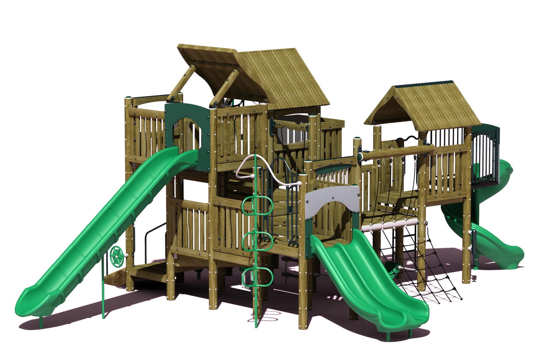 The Pine Play System is a comprehensive playground solution ideal for B2Bs, schools, parks, churches, and HOAs seeking to provide an engaging outdoor experience for children aged 5-12. This expansive structure occupies a 50'4" x 37'2" use zone, offering ample space for exploration and adventure. With a fall height of 8'6", it balances excitement with safety considerations. The system boasts an impressive 19 activities and can accommodate 55-60 children simultaneously, making it perfect for bustling community areas. Weighing 7,440 lbs, it's a sturdy and durable investment. The Pine Play System is proudly ADA compliant, ensuring inclusivity for all children. It meets rigorous safety standards, being IPEMA, ASTM, and CPSC certified. Available in conditioned wood or recycled metal and plastic options, this versatile play system allows for customization to suit various aesthetic preferences and environmental goals. Whether for educational institutions or community spaces, the Pine Play System promises hours of fun, physical activity, and social interaction for young adventurers.