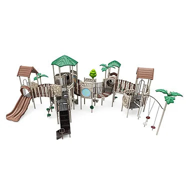 Introducing the Amazon Forest Playground, an ideal solution for parks, schools, communities, HOAs, and churches looking to enhance their outdoor spaces with a dynamic play environment. Designed for children aged 5-12, this playground boasts 27 engaging activities, catering to a capacity of 124-128 children. Covering a use zone of 56 feet by 52 feet and with equipment dimensions of 43’7” by 39’7” by 16’2”, it offers ample space for exploration and play. Key features include various climbers such as the 4ft Trunk Post Climber, 4ft Leaf Step Climber, and 4ft/5ft Rock Climber, along with exhilarating slides like the 4ft Double Slide and 7ft Spiral Tube Slide. Interactive elements such as the Jungle Adventure Panel, Sand Clock Panels, and Visual Effects Panel stimulate creativity, while the ADA Transfer Station ensures accessibility for all children. With a fall height of 84 inches, safety is a top priority. The Amazon Forest Playground combines fun, inclusivity, and durability, making it a perfect addition to any community space.