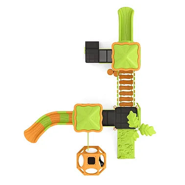 Interactive panels like the World Map Panel, Beads & Cups Panel (Above), and Gears Panel stimulate creativity and cognitive development, while the Rain Wheel and Bongo add sensory elements that engage children's senses and imagination. The unique Qubest feature and the Palm Topper add visual interest and enhance the playground's appeal.