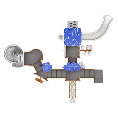 Central to the playground’s excitement is the 9ft Spiral Slide, offering a thrilling descent experience that children will love. Complementing this are the 6ft Sectional Slide with a 67.5° left turn and the 6ft Pod Climber, providing varied sliding and climbing adventures that cater to different preferences and skill levels. The 7ft Wing Climber, 6ft PE Rock Climber, and 6ft Leaf Step Climber further enhance the play area, promoting physical fitness and coordination.