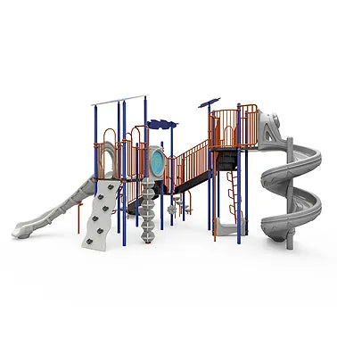 The equipment size of 27’3”×22’×14’9” ensures that Twister Playground is a substantial and engaging play environment, offering ample space for children to enjoy the various activities. This comprehensive and captivating playground is designed to inspire adventure, creativity, and social interaction, making it a valuable addition to any community-focused outdoor space.
