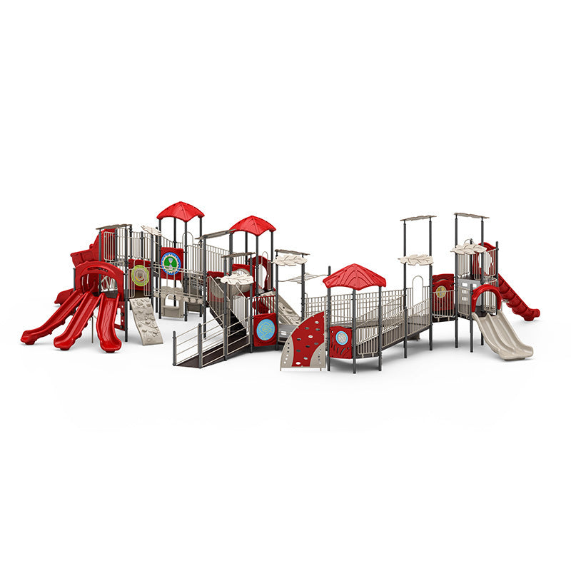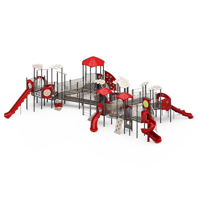 With a sprawling layout that spans over 80 feet in length and features a fall height of 84 inches, this play structure encourages active exploration through climbing, crawling, sliding, and problem-solving in every corner.