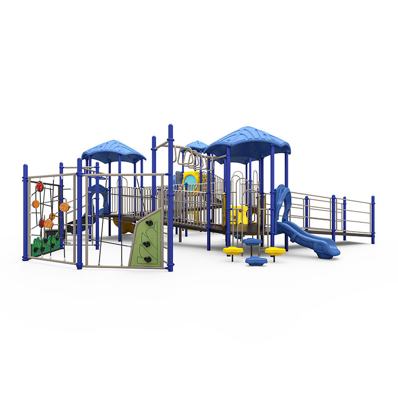 The thoughtfully designed layout promotes inclusive play with ADA access and varying levels of challenge, making it a favorite for schools, parks, and community spaces seeking a bold and exciting play solution.