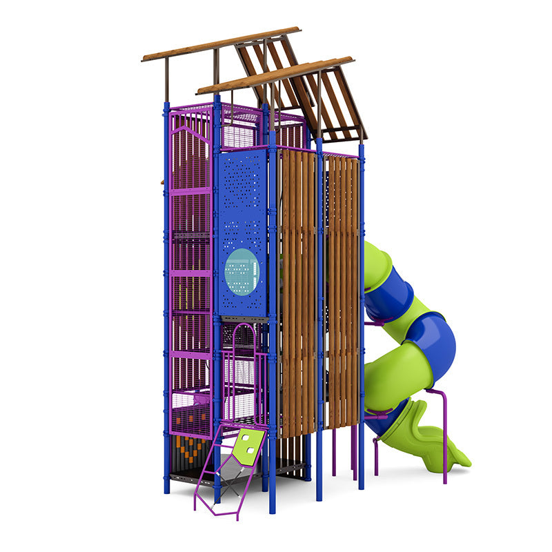 Its striking appearance and compact design make it an ideal choice for parks, schools, or recreational spaces looking to create a memorable and enriching play experience in a smaller footprint. The TUMBLE TOWER stands as a beacon of adventure, drawing children into a world of climbing fun and cooperative exploration.