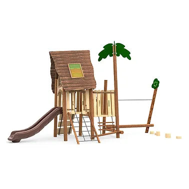Welcome to the Hawaiian Hut Playset, where the spirit of aloha meets the excitement of outdoor adventure! Designed for businesses, churches, homeowners' associations, schools, and parks, the Hawaiian Hut Playset offers an immersive island-themed experience for children aged 5 to 12.